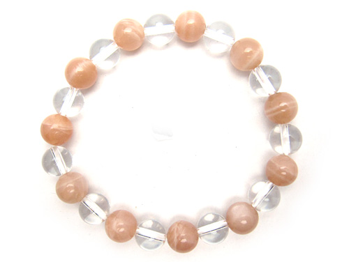 オレンジムーンストーン&クリスタル(水晶)で組み合わせたブレスレットです。オレンジムーンストーンは穏やかで優しい気持ちにさせてくれる効果もありますので、うつやノイローゼなどから持ち主を守ると言われています。
