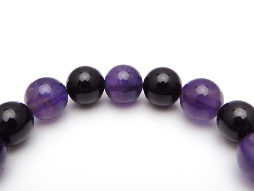 アメジスト&オニキスで組み合わせたブレスレットです。アメジストは恋の熱情以外にも、ストレスで疲れた心を癒し、落ち着かせ、穏やかな安らぎを与えてくれるといわれる、スピリチュアルパワーの強い石のひとつでもあるでしょう。