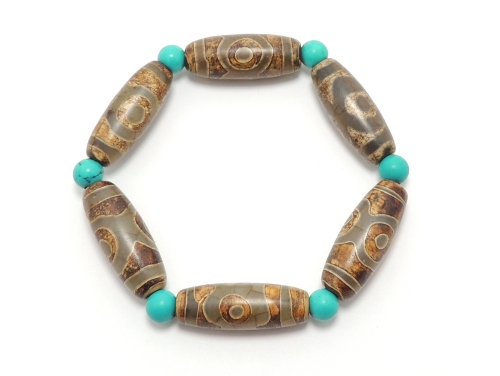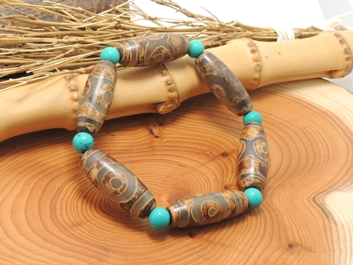 天珠&ターコイズで組み合わせたブレスレットです。手首サイズ:15cm。