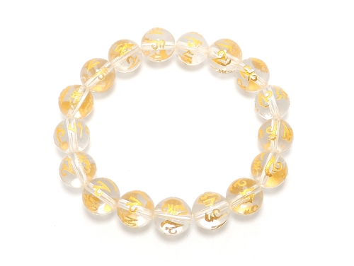 エスニックブレスレット・アジアンパワーストーン クリスタル(水晶)(六字真言)AAA(4月誕生石)10ミリ 開運 ワンカラーブレス [サイズ選べる][日本製][送料無料] (11258)