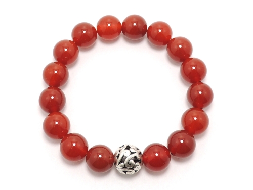 エスニックブレスレット・アジアンパワーストーン チベット合金10ミリ レッドアゲートAAAA10ミリ 魔除・厄除 [サイズ選べる][日本製][送料無料] (11265)