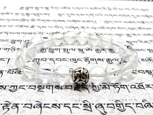エスニックブレスレット・アジアンパワーストーン チベット合金8ミリ クリスタル(水晶)AAAAA最高品質(4月誕生石)8ミリ 魔除・厄除・開運 [サイズ選べる][日本製][送料無料] (11277)