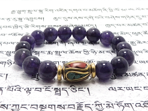 チベットハンドメイドビーズ&アメジストで組み合わせたブレスレットです。チベット合金は存在感が抜群で、アクセサリーをより豪華に、そしてオリエンタルで個性的な雰囲気にしてくれます。チベット合金は使えば使うほど愛着のある味わいの深い色合いに変身すると言われています。