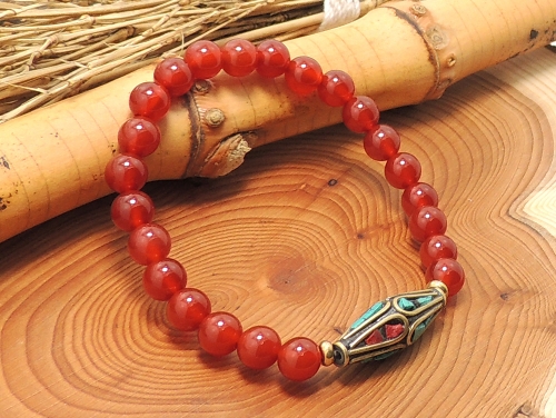 エスニックブレスレット・アジアンパワーストーン チベットハンドメードビーズ菱形21ミリ レッドアゲートAAAA8ミリ チベット合金真鍮4ミリ 金運・魔除・厄除 [サイズ選べる][日本製][送料無料] (11502)