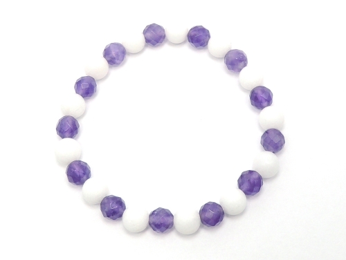 パワーストーンブレスレット アメジストAAA(2月誕生石)64面丸カット6ミリ ホワイトクォーツァイト6ミリ 開運・復縁・恋愛運 [サイズ選べる][日本製][送料無料] (11743)