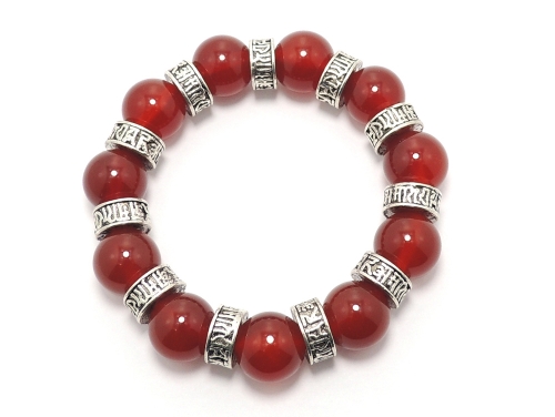 エスニックブレスレット・アジアンパワーストーン レッドアゲートAAAA12ミリ チベット合金(梵字 六字真言)マニ車 如意宝珠10ミリ 魔除・厄除 [サイズ選べる][日本製][送料無料] (11753)