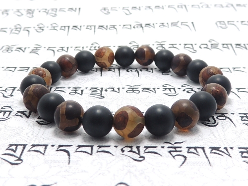 ・チベット天珠(紅朱砂亀甲) AAAA 8mm ・オニキス(つや消し) AAAA 8mm石言葉のバランス