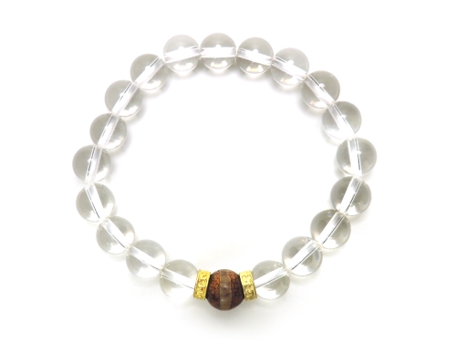 ・チベット天珠(紅朱砂一線) AAAA 8mm ・クリスタル(水晶) AAAAA最高品質 8mm ・チベット合金(純黄銅真鍮 六字真言 ロンデル) 吉祥如意6mm×3mm石言葉のバランス