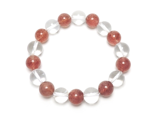 ストロベリークォーツ&クリスタル(水晶)の組み合わせたブレスレットです。ストロベリークォーツは精神をとても優しく癒してくれる石であり、精神的につらいときに気持ちを楽にしてくれると言われています。